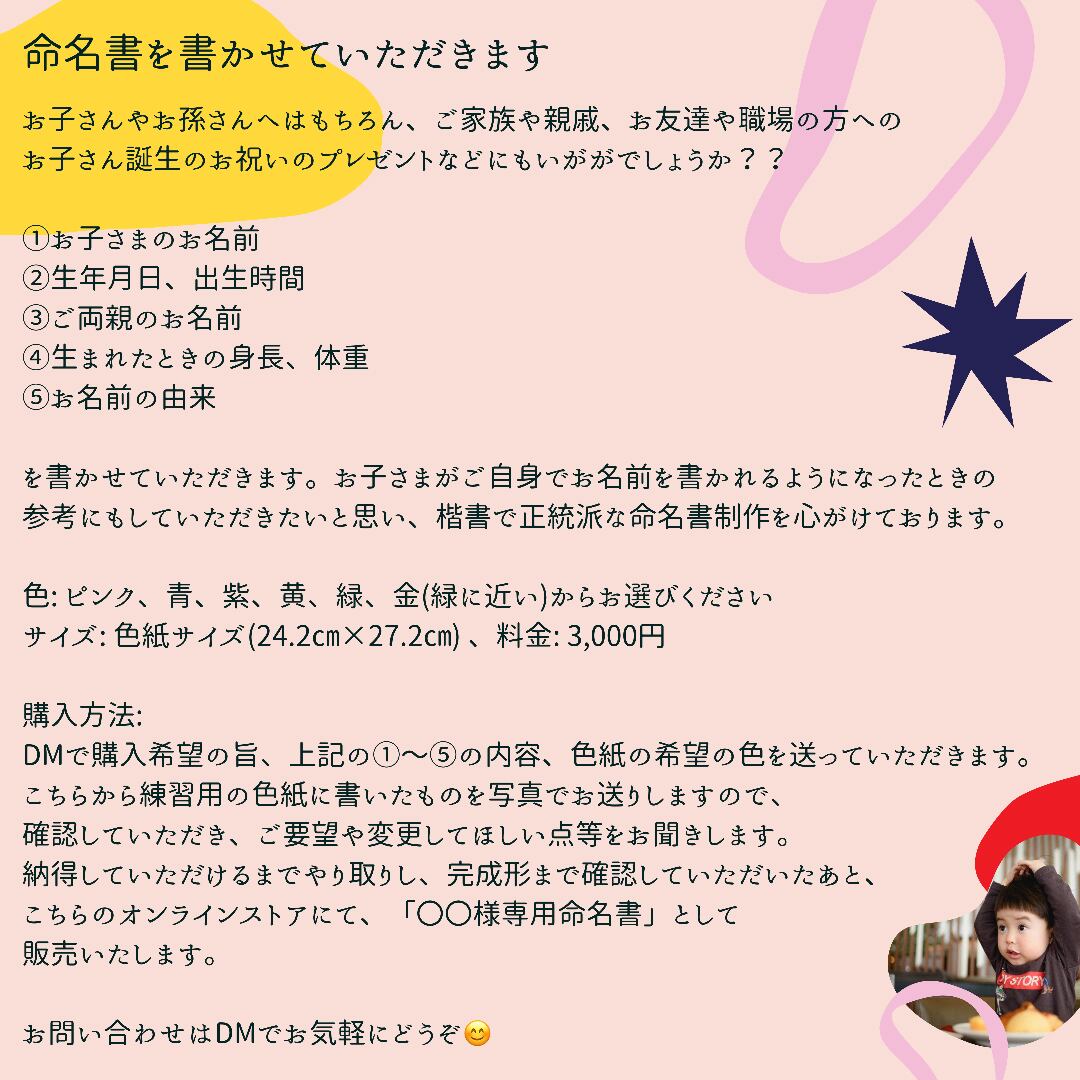 お子さまがご自身でお名前を書くようになったときのお手本として参考にしていただきたいと思い、正しい楷書で正統派の命名書制作を心がけております。