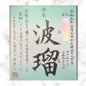 お子さまがご自身でお名前を書くようになったときのお手本として参考にしていただきたいと思い、正しい楷書で正統派の命名書制作を心がけております。