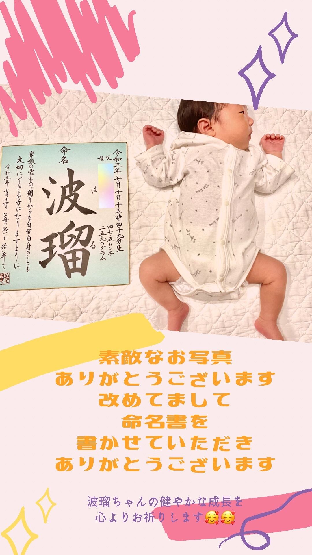【見本】お名前由来付命名書